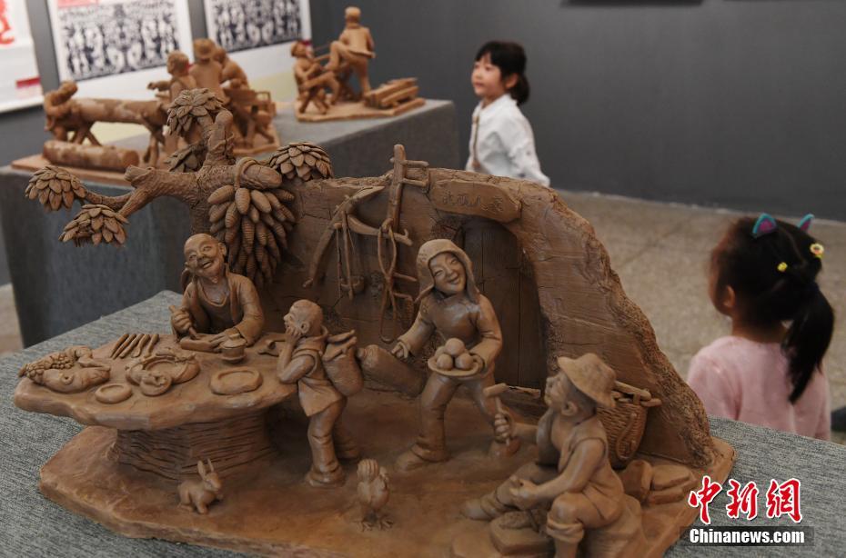 6月7日,甘肃省高校“中国非物质文化遗产传承人群研培计划”培训成果展在甘肃省博物馆举行,传统泥塑作品吸引观者。“回炉学习”后的传承人们带着三年学习后的个人“毕业作品”前来接受大众的考核,精致的作品再次刷新了观众的审美,令人赞不绝口。本次展览共展出砖雕、剪纸、刺绣等7个非遗代表性项目的300余件作品。三年来,甘肃省依托两所高校,开展了唐卡、刺绣、木雕、洮砚、染缬等7个非遗项目的传承人群普及培训和研修,共举办培训班11期,有500余人次参加培训。中新社记者 杨艳敏 摄