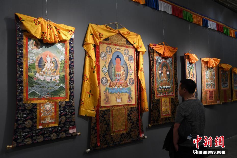 6月7日,甘肃省高校“中国非物质文化遗产传承人群研培计划”培训成果展在甘肃省博物馆举行,多幅精品唐卡作品吸引观者。传承人们带着三年学习后的个人“毕业作品”前来接受大众的考核,精致的作品再次刷新了观众的审美,令人赞不绝口。本次展览共展出砖雕、剪纸、刺绣等7个非遗代表性项目的300余件作品。三年来,甘肃省依托两所高校,开展了唐卡、刺绣、木雕、洮砚、染缬等7个非遗项目的传承人群普及培训和研修,共举办培训班11期,有500余人次参加培训。中新社记者 杨艳敏 摄