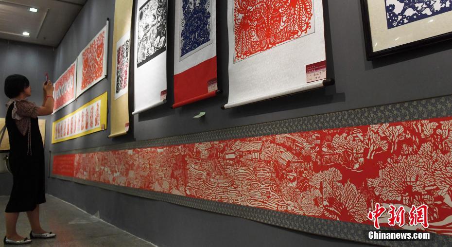 6月7日,甘肃省高校“中国非物质文化遗产传承人群研培计划”培训成果展在甘肃省博物馆举行,剪纸版《清明上河图》吸引观者。“回炉学习”后的传承人们带着三年学习后的个人“毕业作品”前来接受大众的考核,精致的作品再次刷新了观众的审美,令人赞不绝口。本次展览共展出砖雕、剪纸、刺绣等7个非遗代表性项目的300余件作品。三年来,甘肃省依托两所高校,开展了唐卡、刺绣、木雕、洮砚、染缬等7个非遗项目的传承人群普及培训和研修,共举办培训班11期,有500余人次参加培训。中新社记者 杨艳敏 摄
