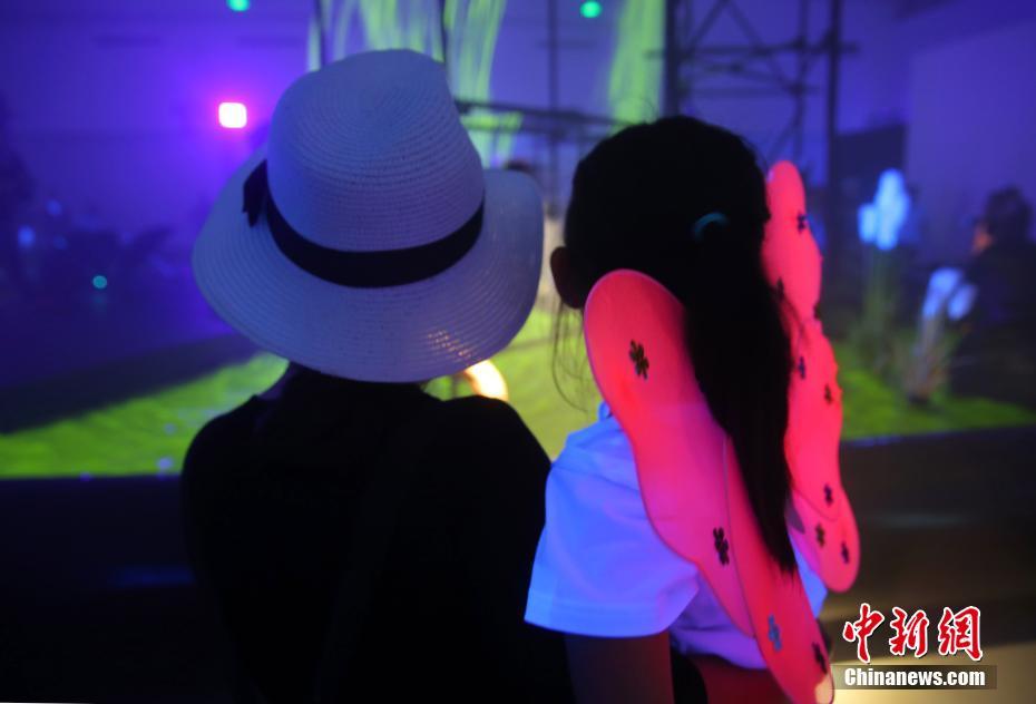 一对母女在桃花源记装置艺术展上感受艺术氛围。 中新社记者 杨可佳 摄