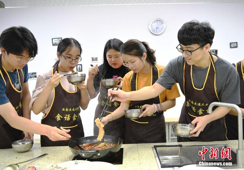 6月12日,学生在《食话食说》选修课上品尝火锅。四川成都一高校开设了一门名为《食话食说》的选修课,由国家级烹饪大师担任主教,学校食堂的经理或厨师长担任助教,这门课程为2个学分,共32个学时,学生每节课将学习两道经典菜肴的历史和制作方法。中新社记者 安源 摄