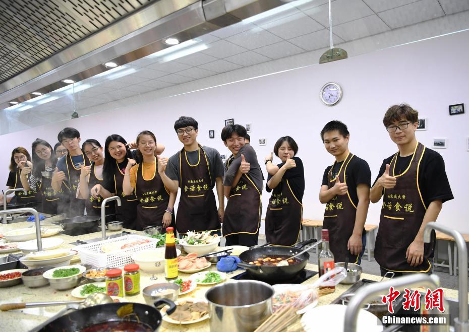 6月12日,学生在《食话食说》选修课上学习。四川成都一高校开设了一门名为《食话食说》的选修课,由国家级烹饪大师担任主教,学校食堂的经理或厨师长担任助教,这门课程为2个学分,共32个学时,学生每节课将学习两道经典菜肴的历史和制作方法。中新社记者 安源 摄