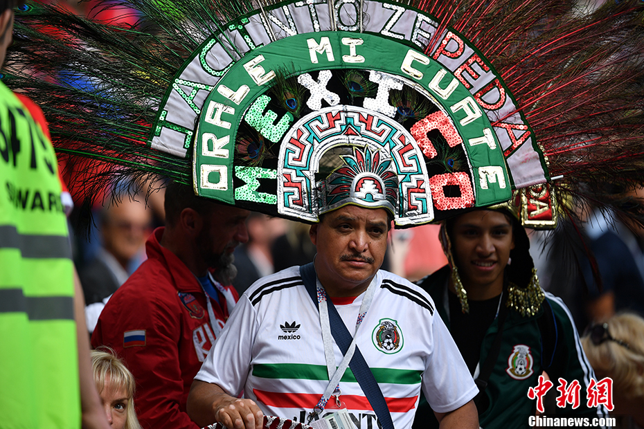 北京时间6月14日23点,俄罗斯世界杯揭幕战在莫斯科卢日尼基体育场打响,东道主俄罗斯对阵沙特阿拉伯。比赛现场,各国球迷俨然成为一道亮丽的风景线。 中新社记者 毛建军 摄