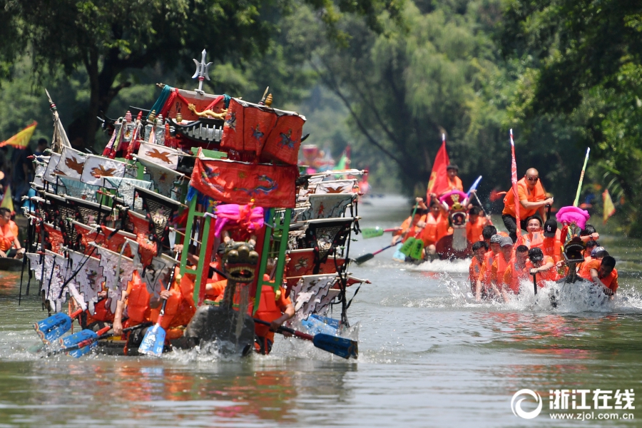 6月18日是我国的传统节日端午节,浙江省各地龙舟纷纷下水竞渡,将浓浓的端午味和祝福传递给大家,共度端午节。