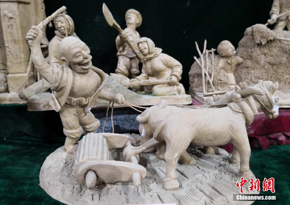 泥塑作品展示农耕场景。 刘玉桃 摄