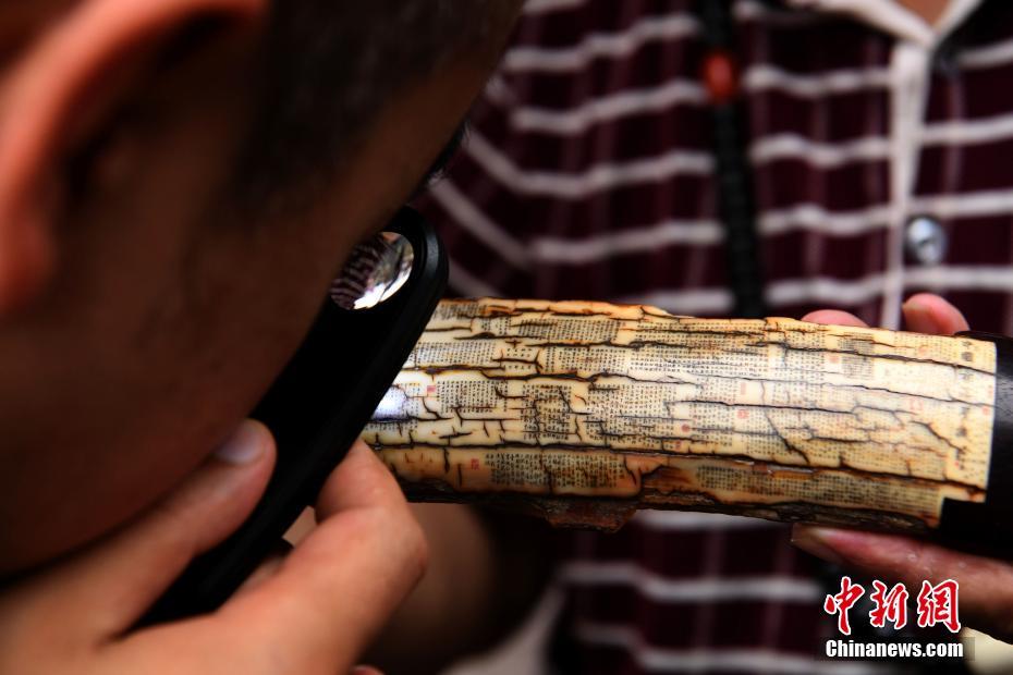 重庆老人玩微刻书法 字体细如毛发