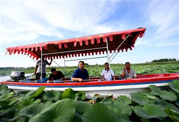 6月26日,在锡林浩特市举行的额尔敦敖包祭祀大典上,乌兰牧骑队员演唱敖包歌。