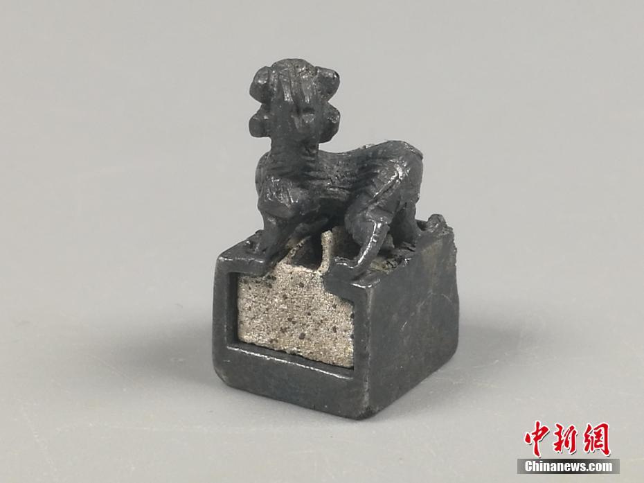 “皇坟”点M9出土银质麒麟钮套印。钟欣 摄