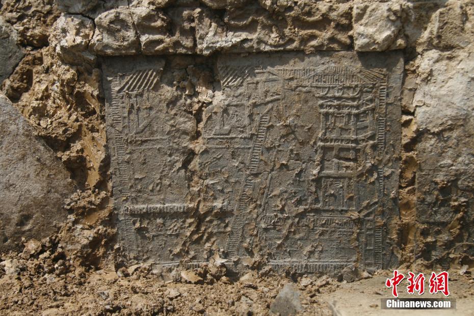 樊哙村汉墓群“皇坟”点M5画像砖楼阁细部。钟欣 摄