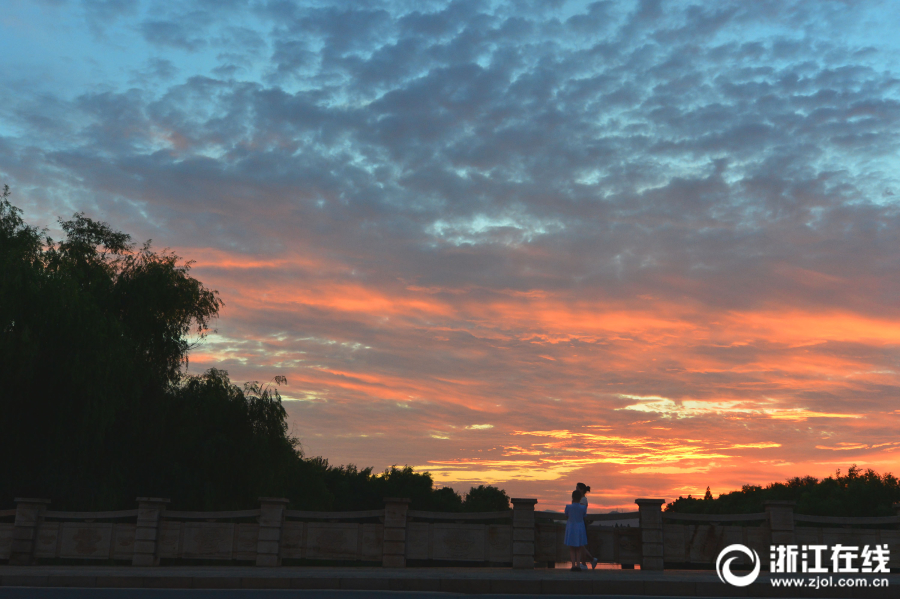 杭州高温继续 “烧”出漫天红霞