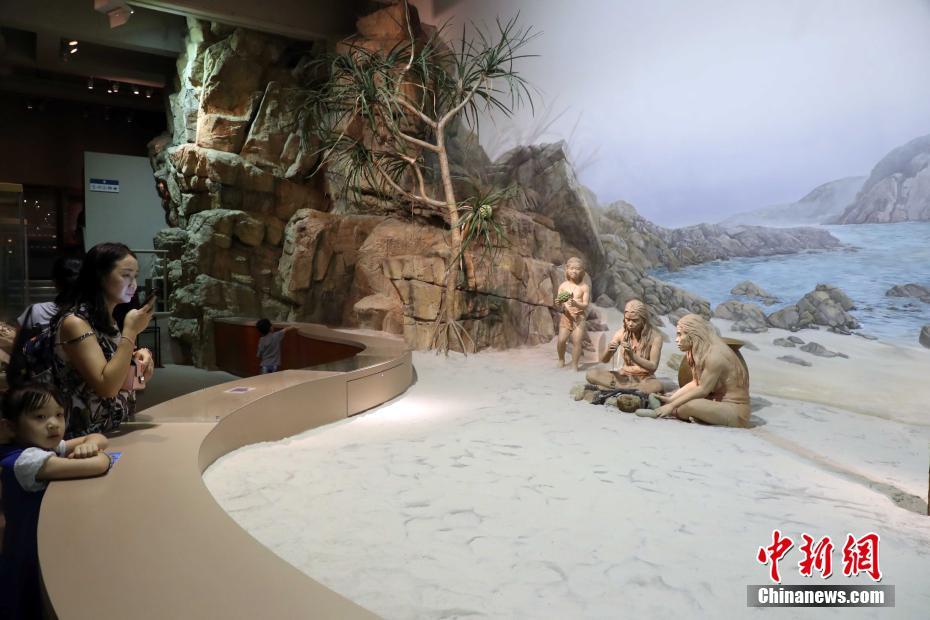 展区生动地介绍以考古成果再现了6000年前的新石器时代人类在香港地区活动情况。42米长的沙滩场景展示了古代先民做饭、觅食、休息的生活场景,让参观者了解到漫长历史中的人类生活片断。中新社记者 洪少葵 摄