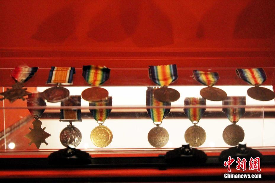 7月5日,香港海防博物馆举行“一战一世纪”展览传媒导赏。图为展品包括战时的纪念勋章等。中新社记者 洪少葵 摄