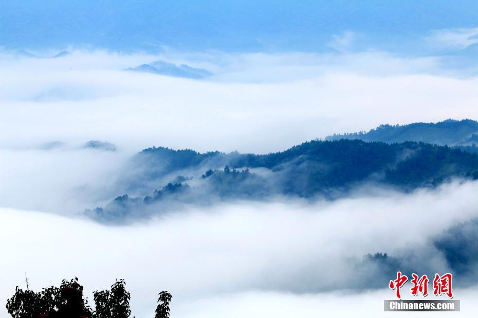 7月9日,在江西省遂川县大坑乡佛祖仙,缭绕的云雾在山谷之间不断涌动,美不胜收。山峰在云雾中若隐若现,犹如人间仙境。那些缠绕在半山的云雾,像系在山腰间的一条条玉带,在山间游动,绘就了一幅幅水墨丹青画。李建平 摄