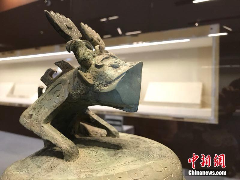 继张大千艺术展、“江口沉银”展相继亮相中国国家博物馆以后,7月19日,四川又一文博大展:“古蜀华章——四川古代文物菁华”展将登陆国博。图为蟠龙盖兽面纹青铜罍。钟欣 摄
