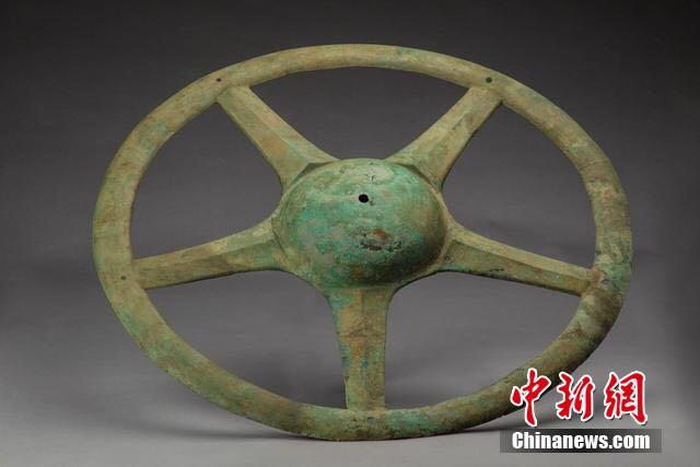 据悉,三星堆、金沙遗址以及战国时期蜀墓将首次以古蜀文明的身份进行整体展示,共展出210件(套)文物,其中包括132件一级文物,将勾勒出古蜀文明发展过程中的华美篇章,从侧面展示华夏文明多元一体的成长历程。图为青铜太阳轮形器。钟欣 摄