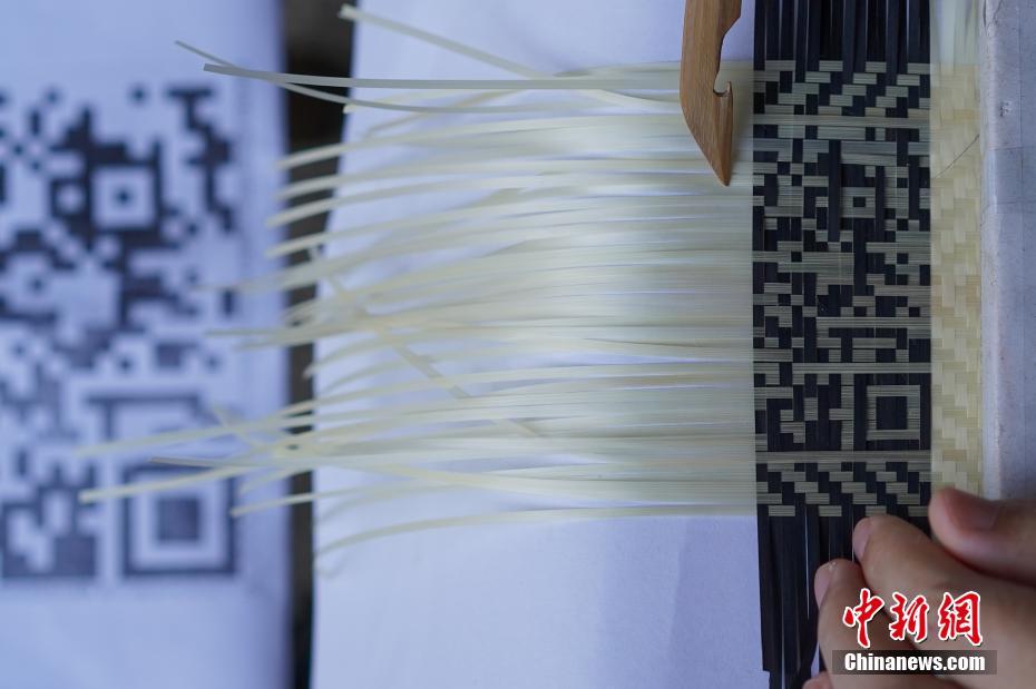 7月11日,贵州省三穗县,杨杜鹃即将完成一幅定制的竹编二维码作品。杨杜鹃是贵州省黔东南苗族侗族自治州三穗县人,2014年她怀着振兴三穗县竹编工艺的梦想,辞掉工作返乡,带领三穗县界牌村的竹编艺人一起创业。三年来,杨杜鹃的公司共培训当地农民竹编工艺者300多人,通过公司+农户的订单式生产模式,通过网络平台,所生产的竹编产品年销售额达百万元,使当地与公司合作的农户实现脱贫增收。2018年,应长期合作客户对竹编二维码的需求,杨杜鹃经过创新,将时下流行的各类二维码图案通过传统的竹编技艺来呈现,经过几次技术改良后,二百元一个的竹编二维码上市后受热捧。中新社记者 贺俊怡 摄