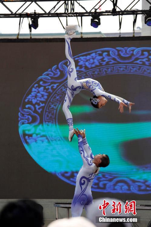 中国艺术家表演高难度杂技节目。余瑞冬 摄