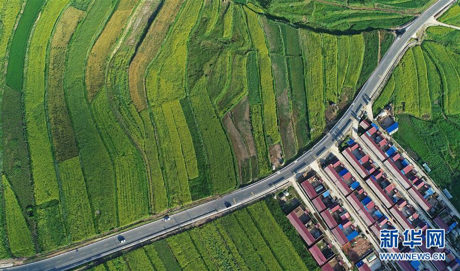 宁夏固原市隆德县观庄乡前庄村盛开的油菜花(7月17日无人机拍摄)。 新华社记者王鹏摄