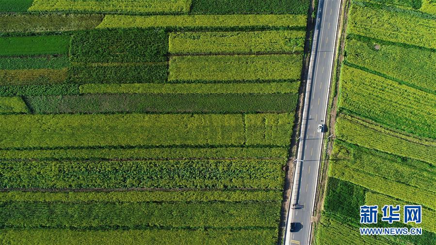 宁夏固原市隆德县观庄乡前庄村盛开的油菜花(7月17日无人机拍摄)。 新华社记者王鹏摄