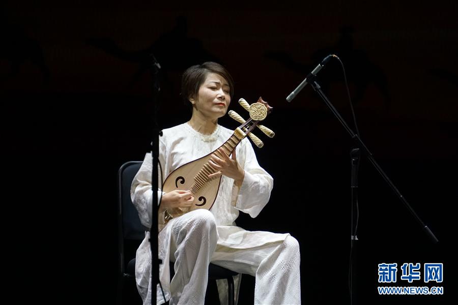 7月17日,上海音乐学院教授吴强在《敦煌国乐——中国国乐名家音乐会》演奏柳琴《剑器》。 新华社记者 张玉洁 摄