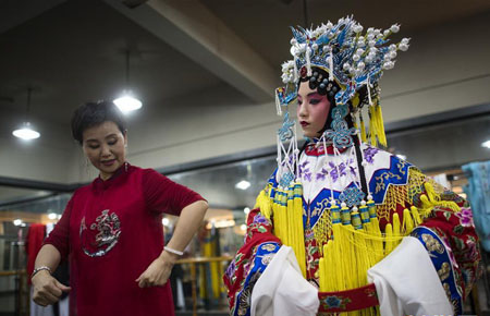 7月18日,演员杨俊(中)在《党的女儿》中饰演田玉梅。 当日,改编自同名歌剧的现代黄梅戏《党的女儿》在武汉首演。该歌剧由湖北省戏曲艺术剧院联袂鄂皖两省戏剧名家通力打造,包括国家一级作曲徐志远、安徽省黄梅戏剧院主胡演奏家李万昌、国家一级编剧宋西庭、国家一级导演邓德森等。 新华社记者 肖艺九 摄
