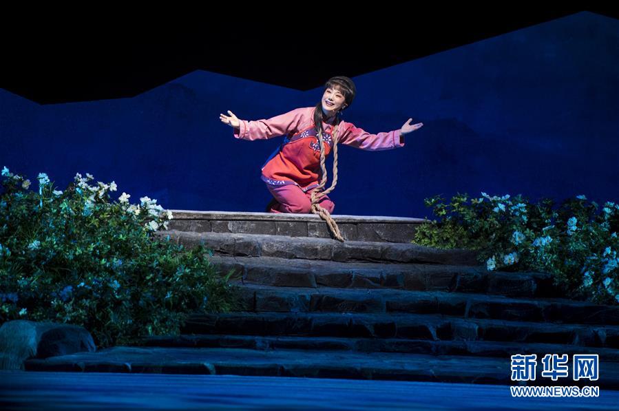 7月18日,演员杨俊在《党的女儿》中饰演田玉梅。 当日,改编自同名歌剧的现代黄梅戏《党的女儿》在武汉首演。该歌剧由湖北省戏曲艺术剧院联袂鄂皖两省戏剧名家通力打造,包括国家一级作曲徐志远、安徽省黄梅戏剧院主胡演奏家李万昌、国家一级编剧宋西庭、国家一级导演邓德森等。 新华社记者 肖艺九 摄