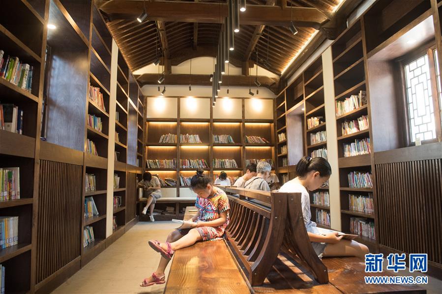 7月19日,读者在德清县乾元国学图书馆阅读。