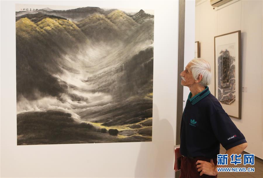 7月20日,在乌克兰基辅,一名观众欣赏一幅中国水墨画。 “写意中国”中国国家画院美术作品欧洲巡展20日在乌克兰国家美术家协会大厦展厅举行。“写意中国”是中国国家画院重要的年度展览品牌。欧洲巡展是该展首次走出国门,首站在德国举行,乌克兰是第二站。巡展的意义在于弘扬中国国画艺术,促进国际绘画艺术交流互鉴。本次画展将于8月5日结束。 新华社记者陈俊锋摄