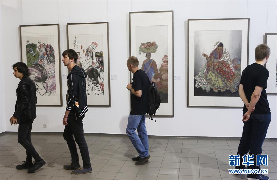 7月20日,在乌克兰基辅,人们在画展上参观。 “写意中国”中国国家画院美术作品欧洲巡展20日在乌克兰国家美术家协会大厦展厅举行。“写意中国”是中国国家画院重要的年度展览品牌。欧洲巡展是该展首次走出国门,首站在德国举行,乌克兰是第二站。巡展的意义在于弘扬中国国画艺术,促进国际绘画艺术交流互鉴。本次画展将于8月5日结束。 新华社记者陈俊锋摄