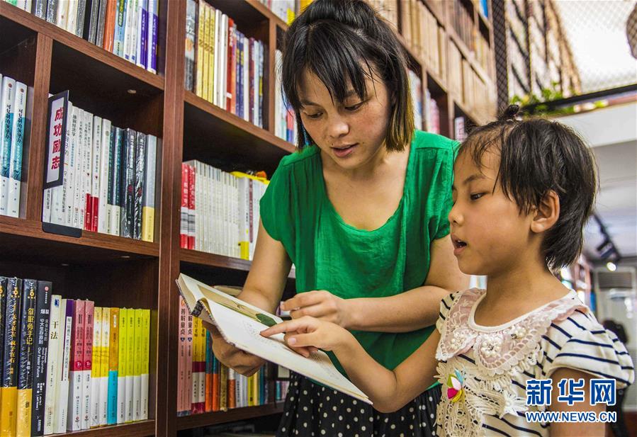 7月21日,在枣强县新华书店,家长帮助孩子挑选书籍。暑假期间,河北省枣强县许多中小学生来到该县新华书店阅读、购买书籍,在书香中度过一个充实的假期。新华社记者 李晓果 摄