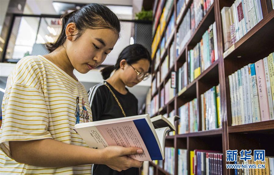 7月21日,在枣强县新华书店阅读区,学生在翻阅书籍。暑假期间,河北省枣强县许多中小学生来到该县新华书店阅读、购买书籍,在书香中度过一个充实的假期。新华社记者 李晓果 摄