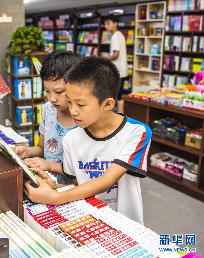 7月21日,在枣强县新华书店,学生在挑选书籍。暑假期间,河北省枣强县许多中小学生来到该县新华书店阅读、购买书籍,在书香中度过一个充实的假期。新华社记者 李晓果 摄