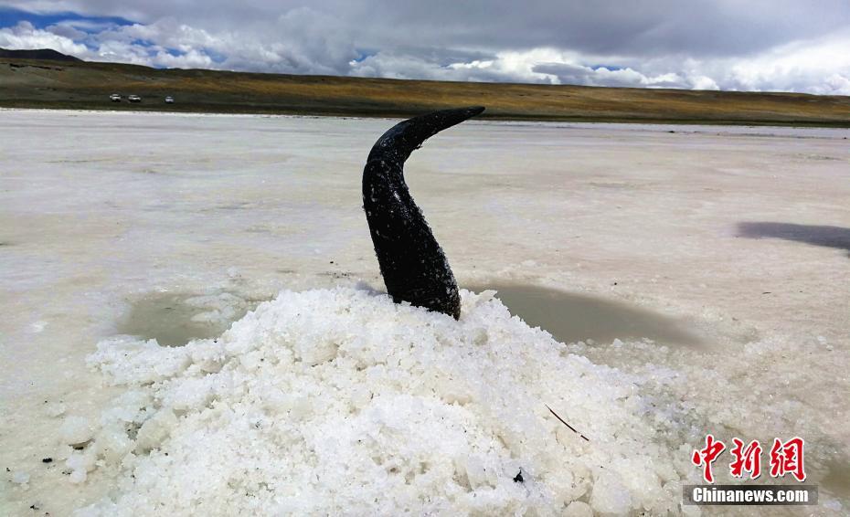 7月20日,西藏阿里地区革吉县盐湖乡的村民在卡庆措盐湖手工采集好的盐。数百年前约有50多家盐帮驻扎在此,因交通条件落后,他们将采集的自然盐装入羊毛编织的袋子,通过羊背驮运,送到阿里普兰、日喀则、印度、尼泊尔等地,用以物易物的方式与商人进行交易,换回青稞、砖茶等日常生活所需的物品,久而久之,他们开辟了一条远负盛名的“盐羊古道”。当地这种羊背驮盐的习俗被收入了第五批西藏自治区非物质文化遗产代表性项目名录。近日,中新社记者抵达这个依盐湖而居的乡村,探访这条古道的变迁史。 中新社记者 赵延 摄
