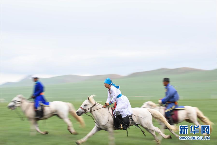 7月21日,在西乌珠穆沁旗的白马文化节上,当地牧民参加骑马比赛。 近日,内蒙古自治区西乌珠穆沁旗举办第五届白马文化节。在为期两天的文化节中,当地牧民参加骑马、射箭、搏克等蒙古族传统体育运动,展现了蒙古族民俗文化与草原儿女风采。 新华社记者 刘磊 摄