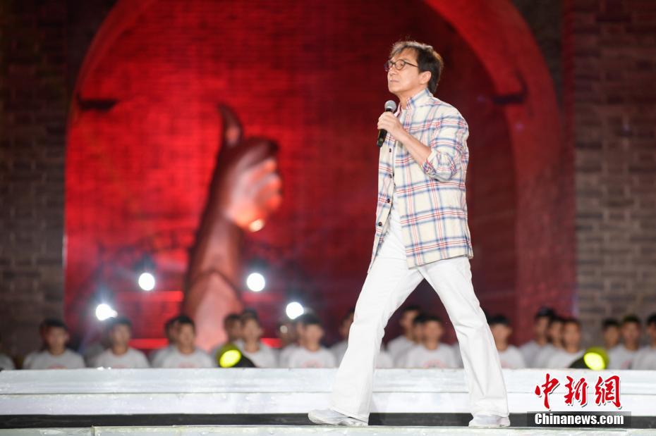 7月22日晚,第四届成龙国际动作电影周闭幕式在山西大同古城南城墙关城内举行,来自海内外的杰出电影人相聚在一起,共同见证11项钢铁人动作类奖项的揭晓。成龙在闭幕式登台献唱。 武俊杰 摄