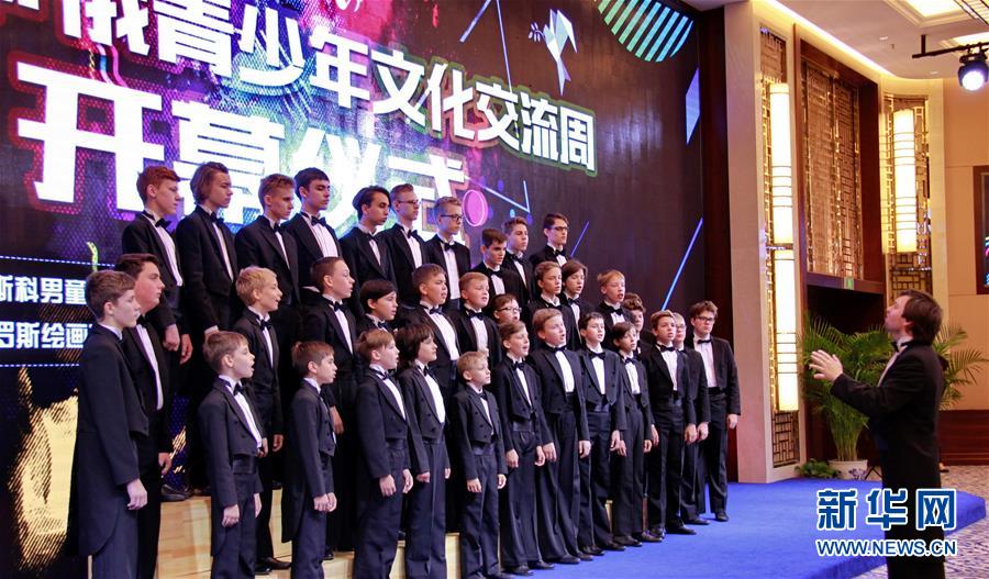 7月24日,俄罗斯男童合唱团在开幕式上表演。当日,由宋庆龄青少年科技文化交流中心与俄罗斯文化中心共同发起的2018中俄青少年文化交流周在北京开幕。文化交流周期间,中国和俄罗斯的音乐家、美术家、书法家将为中俄两国青少年传授声乐、器乐、绘画、书法等技艺。新华社记者 李欣 摄