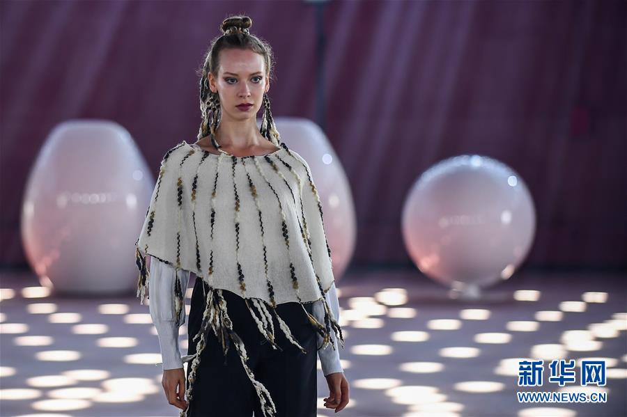 7月24日,模特在芬兰赫尔辛基时装周上展示芬兰设计师玛伊·涅米的作品。 一年一度的赫尔辛基时装周7月20日至25日在芬兰首都赫尔辛基举行。 新华社发(谢尔盖·斯捷潘诺夫摄)