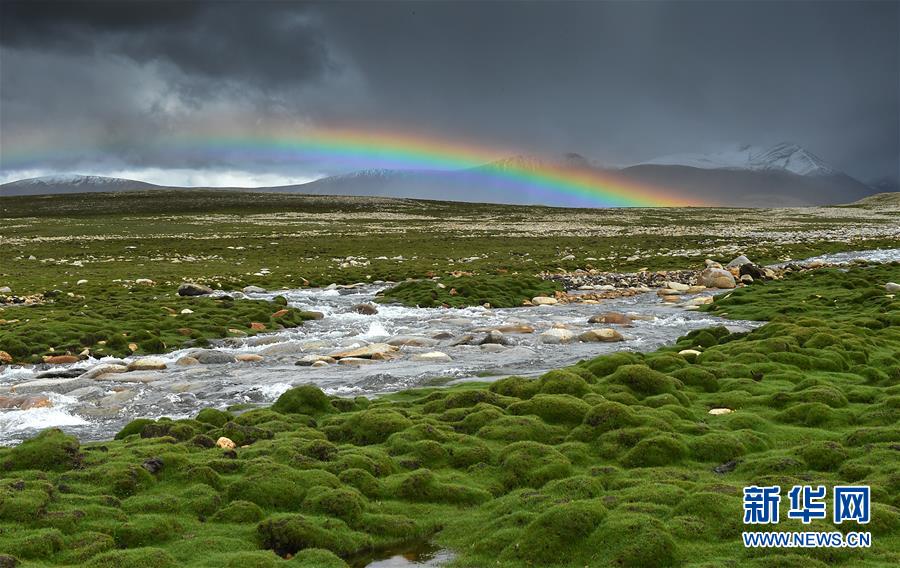 西藏日喀则市定日县出现雨后彩虹(7月24日摄)。