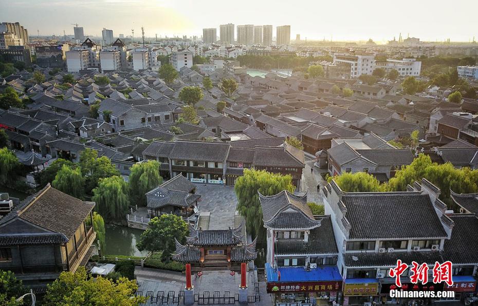 航拍泰州稻河古街区 青砖黛瓦历史悠久