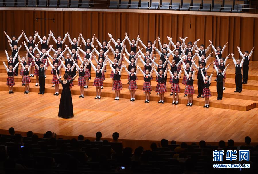 7月30日,北京昌平区南口铁道北小学扶轮合唱团的小演员们在演唱中。新华社记者 罗晓光 摄