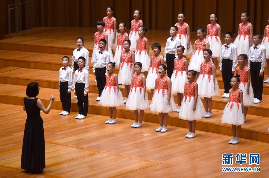 7月30日,北京房山区昊天学校合唱团的小演员们在演唱中。新华社记者 罗晓光 摄