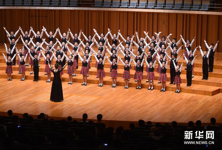 7月30日,北京昌平区南口铁道北小学扶轮合唱团的小演员们在演唱中。 新华社记者 罗晓光 摄