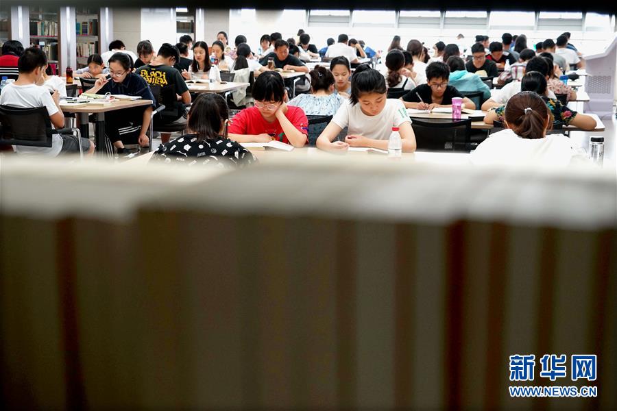 7月31日,读者在郑州图书馆综合图书借阅区内读书。进入暑期,郑州图书馆迎来读者高峰期,馆内各阅览区每天都座无虚席。图书馆相继采取提前开放、增开入口、增设阅读席位、开放夜读吧等措施,以满足读者需求。 新华社记者李安摄