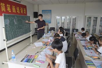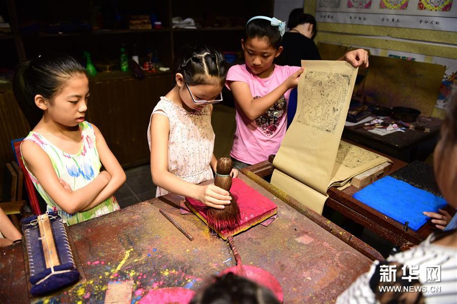 今年暑期,河北省武强年画博物馆招募20余名中小学生,向年画艺人学习制作技艺,传承非遗文化。 新华社记者 李晓果 摄