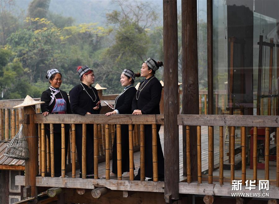在广西南宁市青秀区南阳镇施厚村古岳坡,壮族民歌传承人梁桂花(右一)和几名壮族妇女唱山歌(1月4日摄)。新华社记者 陆波岸 摄