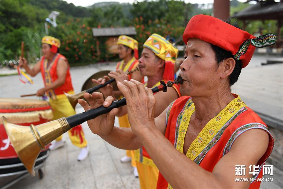 在广西南宁市青秀区南阳镇施厚村古岳坡,村民在吹唢呐为南阳大鼓展演伴奏(7月19日摄)。 长期以来,广西被称为“歌海”,首府南宁也有着“天下民歌眷恋的地方”之美誉,而古岳坡则被赞为壮乡歌海中的“歌窝”。这里是壮族文学艺术家古笛的故乡,当地村民“宁可三日无米,不能一日无歌”,迎来送往、婚丧嫁娶等都能以歌来吟唱。“以歌代言”是这里崇尚的生活方式,无论在火塘、晒棚、竹林,还是河汊、谷场、蔗田,随时随地都有人放声歌唱。 实施乡村振兴战略,“歌窝”古岳坡迎来了新的发展机遇。当地党委、政府探索壮大乡村文化创意产业,眼下正大力建设以文化为内核的田园综合体,努力把古岳坡及附近的花雨湖、田野牧歌肉牛产业示范区等连成一体,奏响推动振兴乡村的“田园乐章”。 新华社记者 陆波岸 摄