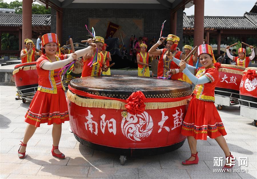 在广西南宁市青秀区南阳镇施厚村古岳坡,村民在进行南阳大鼓展演(7月19日摄)。 长期以来,广西被称为“歌海”,首府南宁也有着“天下民歌眷恋的地方”之美誉,而古岳坡则被赞为壮乡歌海中的“歌窝”。这里是壮族文学艺术家古笛的故乡,当地村民“宁可三日无米,不能一日无歌”,迎来送往、婚丧嫁娶等都能以歌来吟唱。“以歌代言”是这里崇尚的生活方式,无论在火塘、晒棚、竹林,还是河汊、谷场、蔗田,随时随地都有人放声歌唱。 实施乡村振兴战略,“歌窝”古岳坡迎来了新的发展机遇。当地党委、政府探索壮大乡村文化创意产业,眼下正大力建设以文化为内核的田园综合体,努力把古岳坡及附近的花雨湖、田野牧歌肉牛产业示范区等连成一体,奏响推动振兴乡村的“田园乐章”。 新华社记者 陆波岸 摄