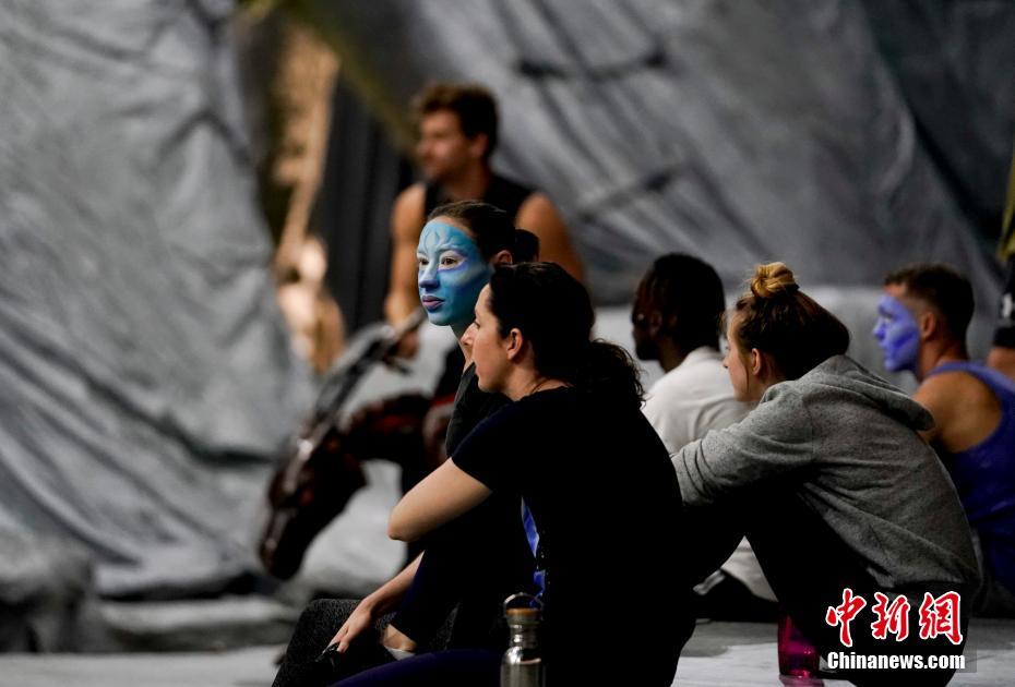 8月1日,太阳马戏《阿凡达前传:托鲁克-首次翱翔》在北京首演。融合先进视觉特效、木偶表演和舞台艺术,太阳马戏《阿凡达前传》将詹姆斯·卡梅隆的《阿凡达》搬上大舞台,为观众带来前所未见的身临其境的多媒体奇观。此次演出的多媒体投影总投影面,大约有2万平方英尺,是标准IMAX 屏幕尺寸的5 倍以上,投影除了还原潘多拉星球的自然景观,还包括因故事情节而产生的大规模事件。整个演出一共使用了115 套服装,平均每名演员拥有3.3套服装而服装部总共生产了超过1000多件物件,包括鞋子、头饰和项链。图为演员在演出前排练。中新社记者 杜洋 摄
