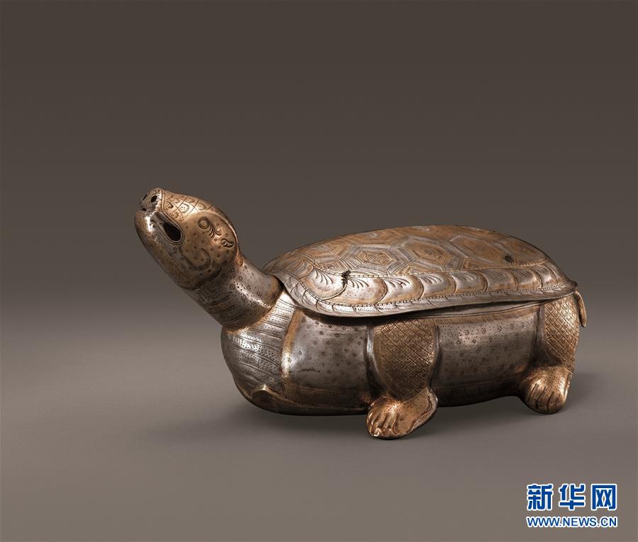 唐鎏金银龟盒出土自陕西省扶风县法门寺地宫,一直被学界普遍认为是一种茶具。经过研究考证和反复实验,法门寺博物馆文博馆员认为,这件国家一级文物真实功用应该是一件香炉。 新华社发 (法门寺博物馆供图)