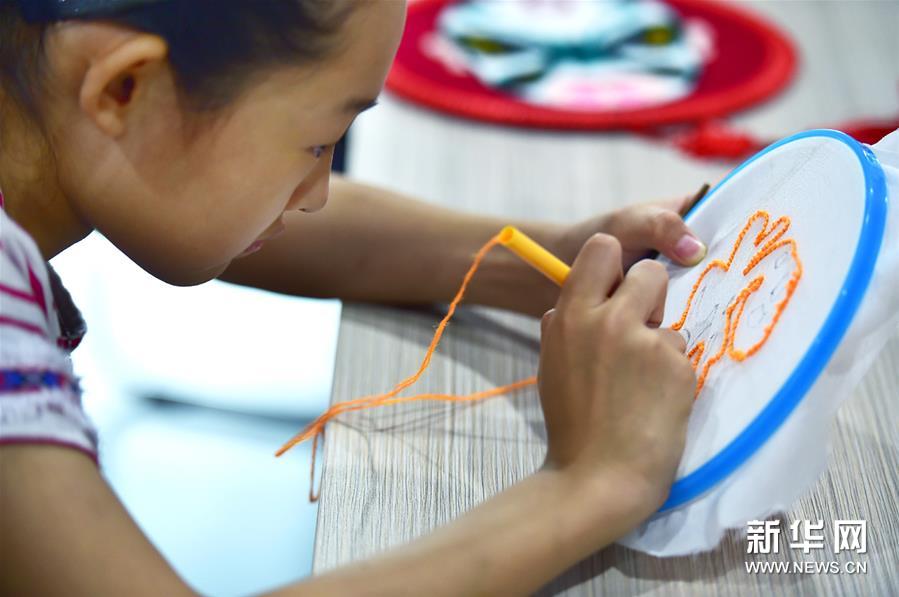 暑假期间,河北省石家庄市桥西区妇联联合石家庄谷隆剪纸传习馆开展了“儿童暑期传统手工艺小课堂”系列活动,让孩子们通过学习剪纸、墩绣等手工技艺,充实假期、了解我国传统文化。 新华社发(章朔 摄)
